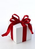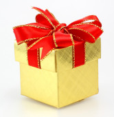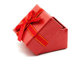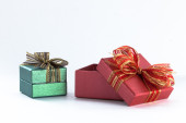 Czerwony uroczysty pudełko jest otwarte i lewej stronie.