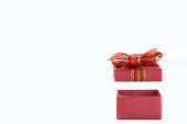 Dwa świąteczne prezenty są ułożone w biały na białym tle