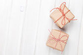 Dwa świąteczne prezenty są ułożone w biały na białym tle