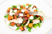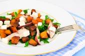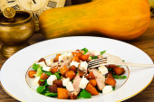 Zdrowe i dieta jedzenie: Sałatka, dynia, gruszki, ser i nasiona.