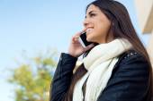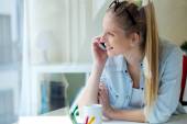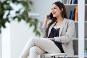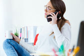 Bardzo młoda kobieta za pomocą jej telefon komórkowy w biurze.
