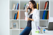 Zdjęcie "Bardzo młoda kobieta za pomocą jej telefon komórkowy w biurze." może być wykorzystywane do celów osobistych i komercyjnych zgodnie z warunkami zakupionej licencji Royalty-free. Obraz jest dostępny do pobrania w jakości wysokiej rozdzielczości do 5760x3840.