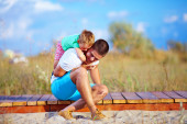 Zdjęcie "radosny ojciec i syn zabawę podczas wakacji" może być wykorzystywane do celów osobistych i komercyjnych zgodnie z warunkami zakupionej licencji Royalty-free. Obraz jest dostępny do pobrania w jakości wysokiej rozdzielczości do 5760x3840.