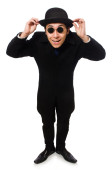 Młody detektyw w czarnym płaszczu odizolowany na białym