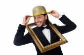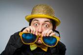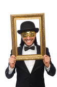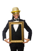Zabawny człowiek w masce odizolowany na biało