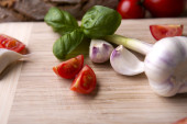 Zdjęcie "świeże pomidory, bazylią i czosnkiem" może być wykorzystywane do celów osobistych i komercyjnych zgodnie z warunkami zakupionej licencji Royalty-free. Obraz jest dostępny do pobrania w jakości wysokiej rozdzielczości do 5760x3840.