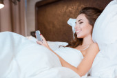 Zdjęcie "Rudy kobietę leżącą w łóżku z smartphone" może być wykorzystywane do celów osobistych i komercyjnych zgodnie z warunkami zakupionej licencji Royalty-free. Obraz jest dostępny do pobrania w jakości wysokiej rozdzielczości do 5760x3840.
