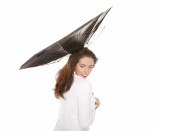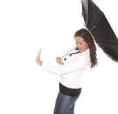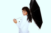 młoda kobieta szczęśliwa z parasolem.
