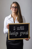 Question mark - Young businesswoman holding chalkboard with text