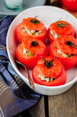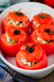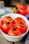 Zdjęcie "Ser i zielonej oliwki nadziewane pomidory" może być wykorzystywane do celów osobistych i komercyjnych zgodnie z warunkami zakupionej licencji Royalty-free. Obraz jest dostępny do pobrania w jakości wysokiej rozdzielczości do 5760x3840.