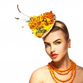 Piękna kobieta z wieniec na głowę patrząc na kamery