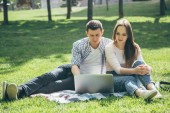 Zdjęcie "Kochankowie w komputerze w parku." może być wykorzystywane do celów osobistych i komercyjnych zgodnie z warunkami zakupionej licencji Royalty-free. Obraz jest dostępny do pobrania w jakości wysokiej rozdzielczości do 5760x3840.