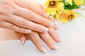 Zdjęcie "Piękny french manicure z chryzantemami." może być wykorzystywane do celów osobistych i komercyjnych zgodnie z warunkami zakupionej licencji Royalty-free. Obraz jest dostępny do pobrania w jakości wysokiej rozdzielczości do 5760x3840.