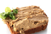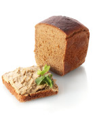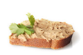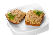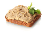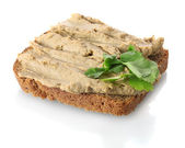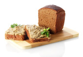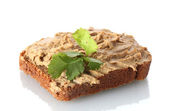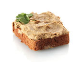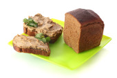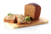 świeże pasztet na chleb na desce na białym tle