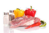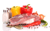 Surowe mięso i warzywa na białym tle na Zielone Świątki?