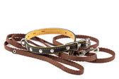 Skórzana Obroża i Smycz na białym tle.