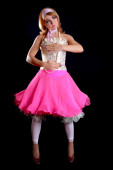 piękny czerwony dziewczyna głowa w Boże Narodzenie kostium na białym tle