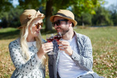 Zdjęcie "Romantyczna para młodych, świetnie się bawimy, ze szkłem winorośli. p" może być wykorzystywane do celów osobistych i komercyjnych zgodnie z warunkami zakupionej licencji Royalty-free. Obraz jest dostępny do pobrania w jakości wysokiej rozdzielczości do 5760x3840.