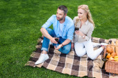 Romantyczna para młodych, świetnie się bawimy, ze szkłem winorośli. p