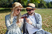 Zdjęcie "Szczęśliwa młoda para relaksujący na trawnik w parku lato. C miłości" może być wykorzystywane do celów osobistych i komercyjnych zgodnie z warunkami zakupionej licencji Royalty-free. Obraz jest dostępny do pobrania w jakości wysokiej rozdzielczości do 5760x3840.