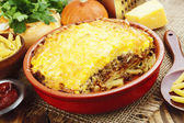Zapiekanka z makaronu z zielonego groszku, cukinia i twaróg