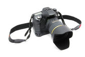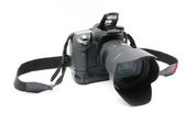Zbliżenie obrazu cyfrowego aparatu fotograficznego z wyświetlaczem, na białym tle