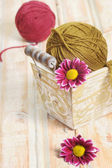 dwie kule do robótek z Broszka, koraliki i dzianiny kwiat bawełny