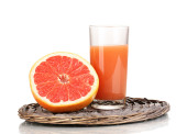 Sok z owoców cytrusowych i świeże owoce na białym tle
