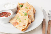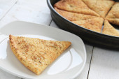 Chipsy domowe pita na białym papierze z sosem jogurtowym