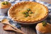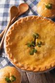 Pot pie kurczaka amerykański z bliska na stole. poziome najwyższym v