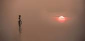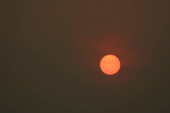 Duże słońce na niebie na zachód słońca, żółty, pomarańczowy gradientu