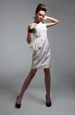 Luksusowa dziewczyna supermodelka pozuje na podium