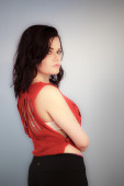 bardzo piękna dziewczyna brunetka w leopard tunika pozowanie Studio