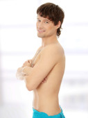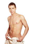 Zdjęcie "przystojny, młody nagi mężczyzna z ręcznikiem" może być wykorzystywane do celów osobistych i komercyjnych zgodnie z warunkami zakupionej licencji Royalty-free. Obraz jest dostępny do pobrania w jakości wysokiej rozdzielczości do 5760x3840.