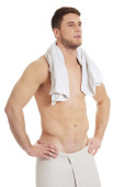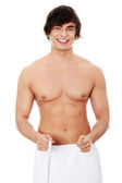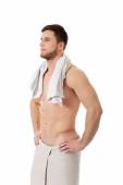Zdjęcie "przystojny, młody nagi mężczyzna z ręcznikiem" może być wykorzystywane do celów osobistych i komercyjnych zgodnie z warunkami zakupionej licencji Royalty-free. Obraz jest dostępny do pobrania w jakości wysokiej rozdzielczości do 5760x3840.