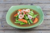 Zdjęcie "Szparagi smażone z krewetek jak jedzenie smaczne." może być wykorzystywane do celów osobistych i komercyjnych zgodnie z warunkami zakupionej licencji Royalty-free. Obraz jest dostępny do pobrania w jakości wysokiej rozdzielczości do 5760x3840.