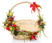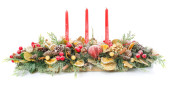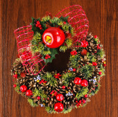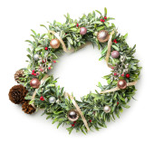 zielony Boże Narodzenie wieniec z dekoracjami na białym tle