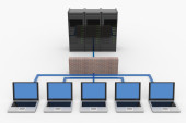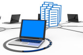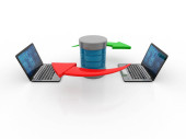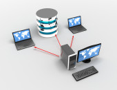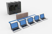 sieć streszczenie komputer z laptopów i archiwum lub bazy danych.