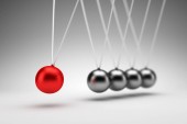 Zdjęcie "Kołyska Newtona z jedną czerwoną piłkę." może być wykorzystywane do celów osobistych i komercyjnych zgodnie z warunkami zakupionej licencji Royalty-free. Obraz jest dostępny do pobrania w jakości wysokiej rozdzielczości do 5760x3840.