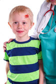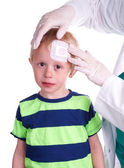 Chłopak dostaje pomoc przez dentystę, aby szczotkować zęby
