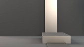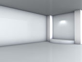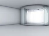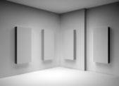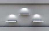 trzy półki 3d i reflektory na wystawie w szare wnętrze