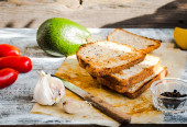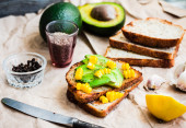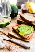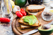 Grzanka z świeże awokado i pieprz, zdrowe przekąski, wegetariańskie f