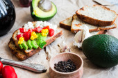 Grzanka z świeżych avocado, pomidor i kozim serem, wegetariańska sna