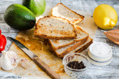 Zdjęcie "chleb i cały awokado z pomidorkami, widok z góry" może być wykorzystywane do celów osobistych i komercyjnych zgodnie z warunkami zakupionej licencji Royalty-free. Obraz jest dostępny do pobrania w jakości wysokiej rozdzielczości do 5760x3840.