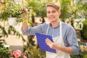 Zdjęcie "Młoda wesoła Kwiaciarnia wewnątrz szklarni." może być wykorzystywane do celów osobistych i komercyjnych zgodnie z warunkami zakupionej licencji Royalty-free. Obraz jest dostępny do pobrania w jakości wysokiej rozdzielczości do 5760x3840.