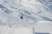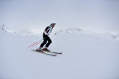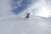narciarstwo na świeżym śniegu w sezonie zimowym w piękny słoneczny dzień