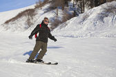 narciarstwo na świeżym śniegu w sezonie zimowym w piękny słoneczny dzień
