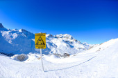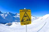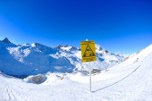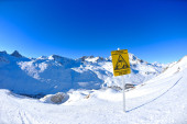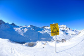 znak pokładzie w wysokich górach na śniegu w zimie