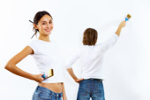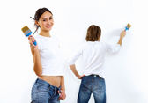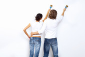 Młoda para z pędzlami razem
