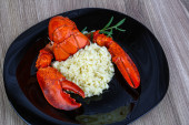 Płyta risotto krewetki, przyozdobionym z świeżej pietruszki i parmes